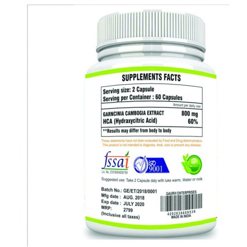 Overweight/obesity is generally accepted as a worldwide epidemic with troublesome consequences. While the general public is most distraught with their overall appearance, excess fat is associated with a number of serious chronic health disturbances. Mycure Nutrition Garcinia Cambogia capsules are all natural, 100% Veg & perfect for weight management. HCA (hydroxycitric acid) is the active ingredient, blocks the conversion of indigested carbohydrates to fat in the body. Weight loss is not noticeable during the first 2 weeks of usage. The Fat loss is counterbalanced initially by gains in weight from tissue hydration (water) & from more glycogen in the liver & muscles. Recommend to buy at least a month supply initially. It is the Most Effective & Economical Weight Management & Appetite Suppressant supplement. Daily Dosage of 2700 mg of HCA/Day & Rs. 14.79 HCA/Gm (see the Comparison sheet in images). It isn't a only a diet, It's premium detox and cleanse Garcinia Cambogia extract contains potent antioxidants which protect the body from harmful toxins from the environment and help keep cells working optimally. Rapid dissolving 100% Veg Mycure Nutrition Garcinia Cambogia extract capsules help the active ingredients metabolize in the body. To achieve the best results with Mycure Nutrition Garcinia Cambogia Extract, Take the capsules on an empty stomach, 45 min. before each meal, thrice a day. Suffice it to say, Mycure Nutrition Garcinia Cambogia, can be an effective Weight Management Supplement for most individuals if used properly- Take the right dose at the right time. Notice, We said Most Individuals. Humans are biologically & respond differently. Then too, humans (being human) do not always comply with directions, making any natural ingredient supplement or less effective. We at Healthgenie , like our tag line nurturing wellness , We have a fitness motto Don't Wish for it , WORK FOR IT .