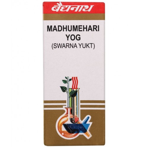 Baidyanath Madhumehari Yog Tablet contains Trivang Bhasma, Gudmar Patra, Neem Patra, Jamun Guthali, Shudha Shilajeet, Swarna Bhasma as active ingredients. It controls the blood sugar level, gives relief in excessive thirst and urination, tingling sensation, fatigue etc.Baidyanath Madhumehari Yog, an ayurvedic herbal medicine actively helps in the detoxification of the body and thus improves the metabolism. Baidyanath Madhumehari Yog with gold is also known to rejuvenate and repair the functions otherwise impaired by high blood sugar levels. Baidyanath Madhumehari benefits immensely in controlling bloood sugar levels within the body.