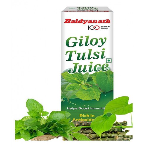 HELPS IMPROVE IMMUNITY: Giloy and Tulsi both are popular herbs in the world of Ayurveda since they are known for their immunity Improving and their properties of bolstering the body's defences against harmful pathogens. Regular consumption of Baidyanath Giloy Tulsi Juice may elevate your immunity level and keep you healthy and strong from within. This herbal tonic encourages your body’s resistance to fight symptoms of common cold and cough and flu.