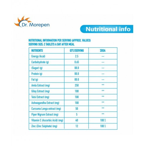Our Immunity Pro Tablets are Non-GMO, Free from Preservatives and GMP Certified. Dr. Morepen ensures to provide the highest quality formulations with rigorous checks & testing. We bring the trust and credibility of more than 20 Years to give you the best of Nature backed by Science.