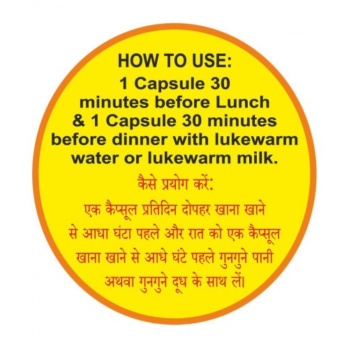 एक से दो कैप्सूल दिन में दो बार गर्म पानी से खाने से पहले लें।