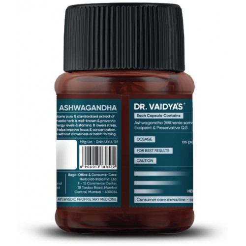 Dr. Vaidya’s Ashwagandha capsules is an all-natural, vegetarian product that contains 500 mg of standardized Ashwagandha extract in each capsule. This powerful dose of authentic, sustainably sourced, standardized extract of Ashwagandha provides a highly refined and effective Ashwagandha capsule.