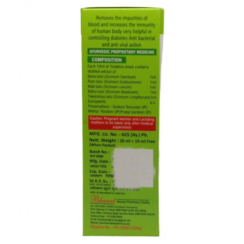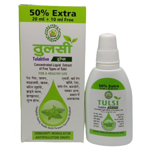 These drops are made with a combination of extracts of Rama Tulsi, Shyama Tulsi, Nimbu Tulsi and Vana Tulsi. The drops are known to have anti-microbial properties and help in giving relief in various bacterial and viral infections.