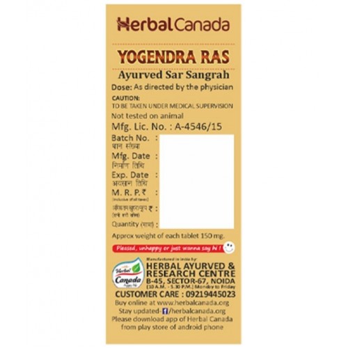 Harc Herbal Canada Yogendra Ras Tablet 50 No's pack of 1|100% Natural Products.