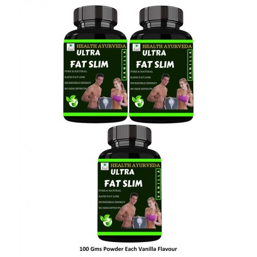 Health Ayurveda Ultra Fat Slim (Vanilla Flavour) Is A Powerful Supplement For Fat Loss. Ultra Fat Slim Is 100% Pure And Natural Herbal Supplement That Is Known To Control You Aappetite, And Presence Of Antioxidants Helps In Stimulating Weight Control. This Is a 100g Ayurvedic Powder Supplement Pack Which You Have To Take 1 Serving In The Morning, Another In Evening. For The Best Results Please Take A Minimum Of 3 Months Dosage And Do Not Expect Either Significant Weight Reduction Or Powerful Appetite Suppression In The First 15 Days. Weight Loss Products 100% Satisfaction With Our Ayurvedic M e d i c i n e For Weight Loss It Is A Natural Weight Loss Treatment Free Shipping Cash On Delivery Across India. Weight Loss | Fat loss | Fat Cutter Supplement | Fat Burner. With Rich Industry Experience And Knowledge, We Are Offering A Qualitative Range Of Fat Burner Ultra Fat Slim Supplement. Key Highlights 1.) Ayurvedic Treatment For Weight Loss. 2.) Fat Burner Plus Is A 100% Natural Ayurvedic. 3.) This Product Is Approved By More Than 40 Doctors Of Ayurveda Center 4.) 15+ Pure Natural ingredient. Benefits Of Ultra Fat Slim: 1. Helps Cut Extra Fat 2. Helps Suppress Appetite 3. Grow M e t a b o l i s m 4. May Improve Blood Flow 5. Possesses Anti-Inflammatory Properties 6. Rich In Anti-Oxidants