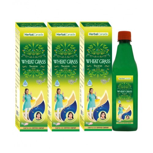 Herbal Canada Wheat Grass Ras | Pack of 3 | Natural Source of vitamins and calcium | Helpful to remove toxins | Naturally immunity enhancer | 100% Natural