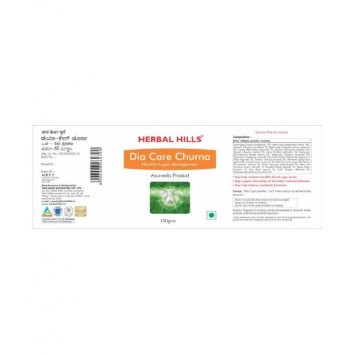 Diacare Ayurvedic formulation is synergistically processed with highly advanced technology. Herbalhills is India's largest online selling brand in pure herb powders. Herbalhills products are made out of best quality and authentic Ayurvedic herbs, available in India. These herbs are specially selected and manually graded to give best products. The quality and efficacy is 100% guaranteed. Please look out for our wide range of other pure herb powders. Herbalhills Dia-care Churna can be used for Ayurvedic purpose. Herbalhills Diacare churna may give benefits to maintain healthy blood sugar levels.