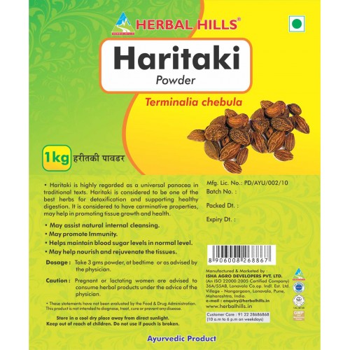 Harde or Harad also called as Terminalia chebula is synergistically processed with highly advanced technology. Herbalhills is India's largest online selling brand in pure herb powders. Herbalhills products are made out of best quality and authentic Ayurvedic herbs, available in India. These herbs are specially selected and manually graded to give best products. The quality and efficacy is 100% guaranteed. Please look out for our wide range of other pure herb powders. Herbalhills Haritaki powder can be used for Ayurvedic purpose. Herbalhills Haritaki powder may act as a bowel cleanser, supports healthy digestion.