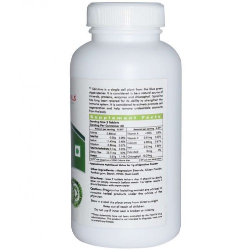 Herbal Hills, the most trusted and leading manufacturer in Organic Superfood has been processing the purest form of Organic Spirulina tablet to offer desirable benefits. The dry-form of an extract is processed using highly advanced technology and cultured under the pristine environment to maintain premium-quality standards. This superfood is free from added colours, gluten and destructive chemicals to reach the highest quality bar. Spirulina is a single cell plant from the blue-green algae kind and is considered to be a natural source of minerals, beta carotenes, amino-acids, proteins, chlorophyll, antioxidants, B-vitamins, and other nutrients. It helps rejuvenate, energize and revitalize the body and its functions. It may help to enhance immunity and protects the vital organs from getting damaged.