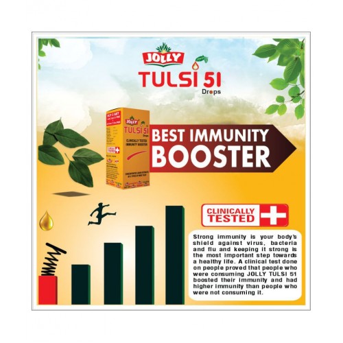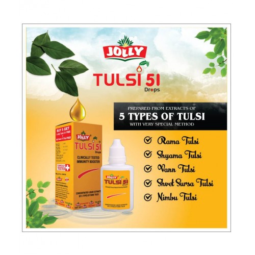 Jolly Tulsi-51 drops is rich Anti Oxidant, Anti Aging, Anti Bacterial, Anti Viral, Anti Septic, Stimulant, Demulcent, Diuretic & Carminative. It helps to restores the natural suppleness of all skin types. Keep your whole family healthy by using Tulsi Drops. it will increase your immunity and kill your diseases. it is Natural Immunity Booster without any side effects. If you take few drops of Tusli Drops daily you may feel Relief from several Diseases. Tulsi Drops balances the refining touch of Tulsi and other herbal ingredients, to calm the skin and the senses.