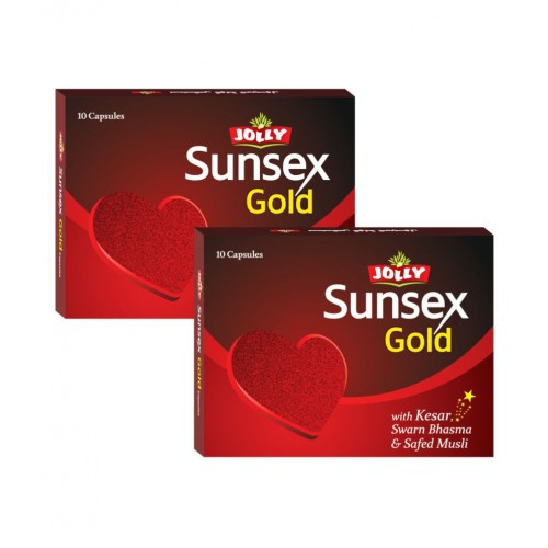 Jolly Sunsex Gold Capsule is a unique Ayurvedic revitalizer fortified with eight powerful Ayurvedic minerals and herbs, including Shilajit, Safed Musli and Ashwagandha, Loh Bhasam, Swaran Bhasam. It helps relieve stress, improve stamina and boost energy and thereby helps you to stay energetic always.