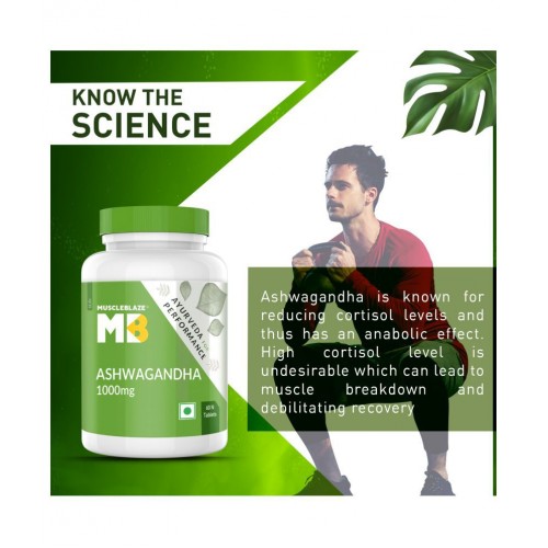 MuscleBlaze Ayurveda for Performance, Ashwagandha 1000 mg, High Strength Potent Formula, 60 Tablets