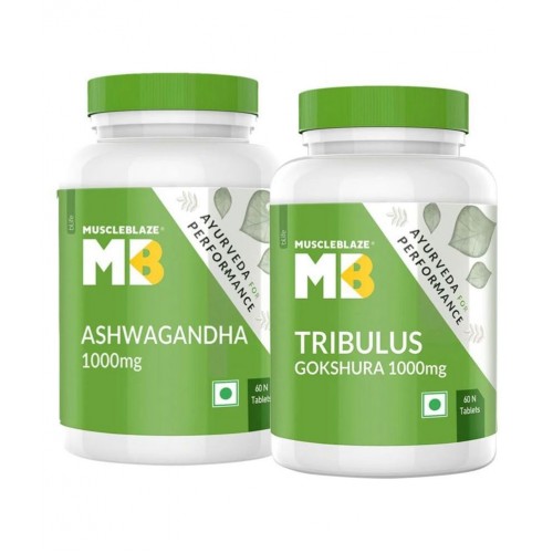 This combo under the ‘Ayurveda for Performance’ range by MuscleBlaze includes MuscleHerb and Tribulus 1000 mg are ayurvedic herbs for muscle building to help bodybuilders build staunch muscles and increase athletic performance. MuscleBlaze Ashwagandha delivers 1000 mg of Ashwagandha per tablet standardized to 5% Withanolides. Ashwagandha is one of the most ancient herbs in Ayurveda. The multiple benefits of Ashwagandha are that it helps in enhancing athletic performance, muscle size, building stamina, and increasing post-workout recovery. It also helps reduce levels, stress, and anxiety. It helps increase and immunity, enhancing athletic performance. Unlike ashwagandha churna or capsule, MB Ashwagandha 1000 mg is easy to consume as it is available as an ashwagandha tablet. Take 2 tablets daily or as suggested by your healthcare professional for optimum performance.MB Tribulus 1000 mg is a potent ayurvedic supplement that offers 1000 mg of Tribulus Gokshura per serving standardized to 40% saponins. It has a vegetarian formulation. This herbal supplement is useful in improving stamina and decreasing fatigue. As a result, you perform better at the gym. It increases the nitric oxide levels to help enhance the pump during workouts. It also enhances energy levels and muscle protein synthesis to provide quick post-workout recovery. These Tribulus tablets may increase natural levels resulting in enhanced, better muscle building, and strength.