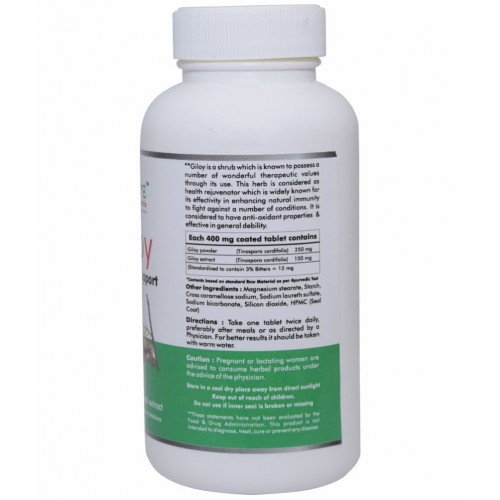 Giloy or guduchi is also known as Gulvel or Tinospora cordifollia. Guduchi which is interdependently processed with latest technologies to produce herbal Tablets called Giloy. These Tablets are created using the pure and dried powder & extract of Giloy to make them very effective and helpful in the weight management process. Every ingredient used in the formation of these Tablets is chemical, pesticide, added sugar and toxin free to help maintain its purity level and Ayurvedic value. These tablets may help in enhancing natural immunity to fight against a number of conditions. It is considered to have antioxidant properties & helps in proper functioning of the liver and kidneys.