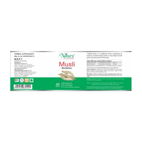 Musli is best known for its role as a revitaliser. The common and scientific name of Musli is Safed Musli and Chlorophytum borivilianum. Unlike commercially cultivated Musli, the Herbal Musli Tablets are free from pesticides, harmful chemicals and other radiant substances to raise the purity bar at 100%. It contains active levels of Saponins along with Mucilage, which has adaptogenic, revitalising, erectogenic, immuno-modulatory and antioxidant properties. These Tablets are gaining confidence as vitalizer and rejuvenator. It strengths physical stamina and overall immunity.