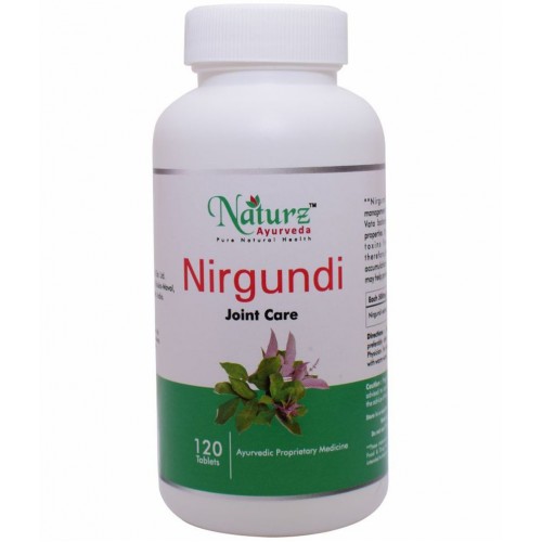 Naturz Ayurvedas Nirgundi tablet has antioxidant, anti-inflammatoary properties. It may help in the management of Amavata due to its Vata balancing and Ushna (hot) properties.Nirgundi mainly helps in arthritic disorders and makes it a potentioan efficient herb for joint pain problems. IIt may help in removing toxins from the body and therefore,helps in preventing accumulation of toxins in the joints and may help provide relief from pain.