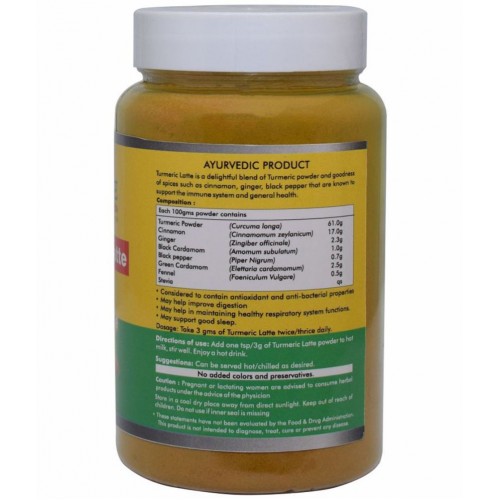 Naturz Ayurveda procured Herbal & Ayurvedic products from leading manufacturers that always come up with unique concepts and herbal supplements to support a healthy way of living. Along with practicing the traditional way of cultivation, it also focuses on the modern ways of manufacturing to assure the premium quality standards. Naturz Ayurveda Turmeric Latte is a delightful blend of Turmeric powder and goodness of spices such as cinnamon,ginger,black pepper that are known to support the immune system and general health.to relieve a common cough and cold. It may support an immunity enhancement and skin care in a natural way.