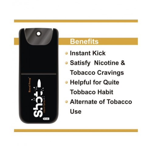 Clove, Mint, Frutta is World First Fusion Ball Technology in Herbal Stick, It helps in craving symptom and helps to quit. Royal Swag’s Shot will help you to stop your craving. Take Shot’s 2 to 3 Spray in mouth and then Light up your Stick after when you feel craving. Natural flavor - Neutral, delicate taste provides a perfect experience, Pleasant and durable smell. No bad breath.Non addictive - Contains no addictive substance.