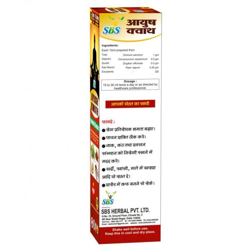 AYUSH Quath Liquid has been developed according to the guidelines of Ministry of AYUSH. It helps in promoting immune system against Chronic viruses. Built with Ashwagandha, pepper and cinnamon as components, this Quath enhances and strengthens the immune system to fight any type of virus.