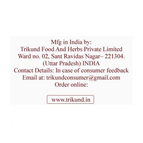 Packer's Name & Address Trikund Food And Herbs Private Limited. Ward no. 02, Sant Ravidas Nagar– 221304. (Uttar Pradesh) INDIA