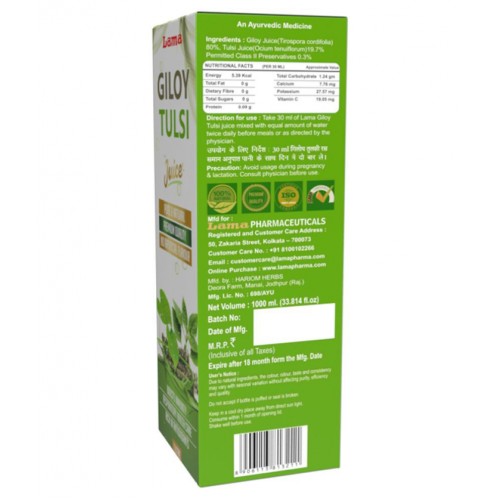 Lama Giloy Tulsi Plus Juice contains the goodness of giloy and tulsi which are essential for the body. The ingredients help to energize the body and fight from infections.