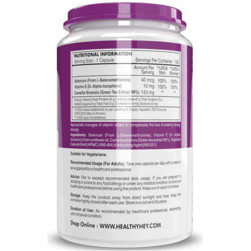 HEALTHYHEY NUTRITION Selenium plus Natural Vitamin E,120 Veg Capsules Capsule 120 no.s