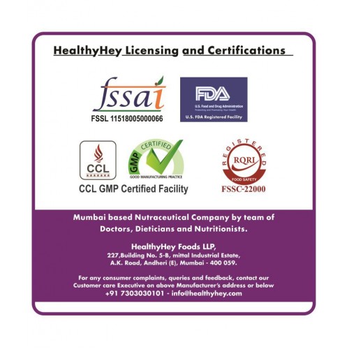 CERTIFIED : Made at facility that is certified by FSSAI, FSSC 22000, GMP and USDA Organic.