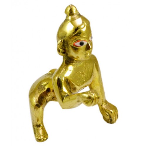 Brass Laddu Ladoo Bal Gopal Hindu God Decorative Showpiece - 9 cm (Brass, Gold) / Baby krishna statue made of Brass Gold Plated.