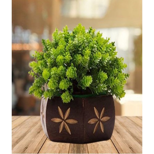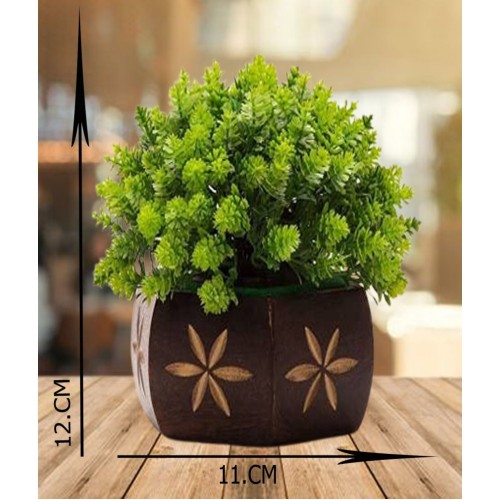 Neki Artificial Plant Japanese Cute Bushy Shrub Topiary Flower with Wooden Pot for Home/Office Decoration- (Yellow)