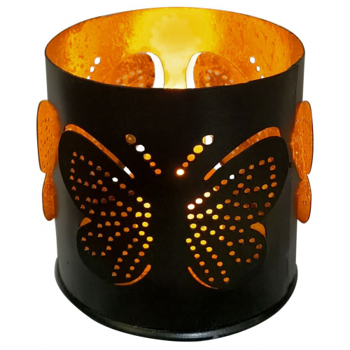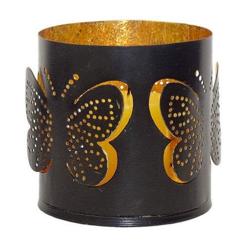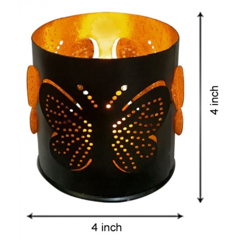 Butterfly Etching Votive | T-Light Candle Holder | Diya Votive | Candle Holder Votive | Floor Decorative | Home Decorative | Temple Decorative | 4 x 4 inches |Outer Black And Inner Gold