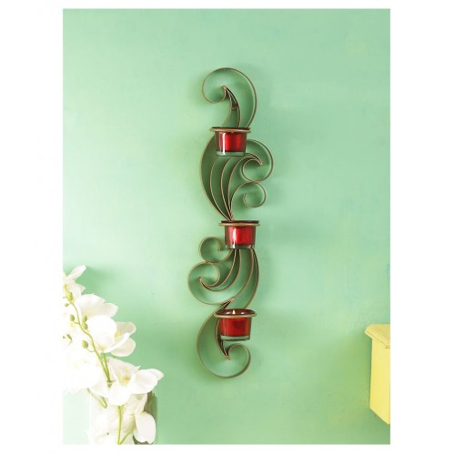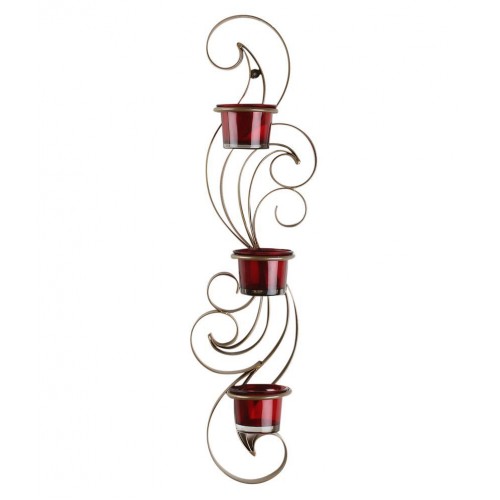This unique Iron Pattern makes an eye catching metal wall art sculpture candle holder to make a beautifully designed home decal! These Sconce holders enhance table decorations with pillar candles / tealight candles, and other wall decals also gives a cohesive look to any given space, be it near garden, living room, dining area, cafe or restuarants. Tealight candles not included.