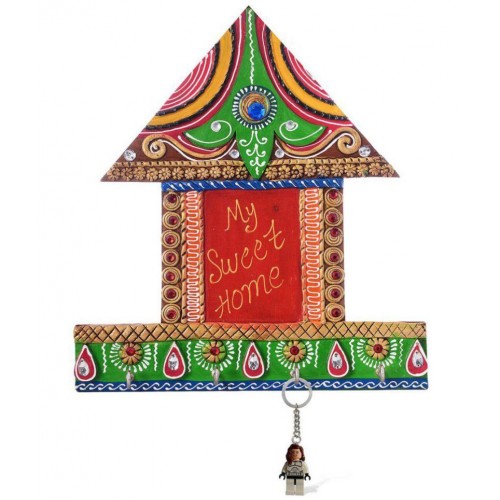 Package Contents:1 My Sweet home Hut Shape Papier-Mache Wooden Keyholder with 4 hooks