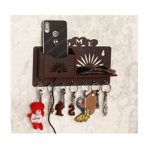 This Key Holder Is An Ideal Combination Of Functionality And Stylishness. If You Are Someone Who Is Seeking A High Quality And Stunning Wall Decor Item For Your Home Or Office, Then This Is An Ideal Pick. Wooden Brown Sweet Home Key Holder with 7 Hooks also have a mobile stand & Great laminated finishing.