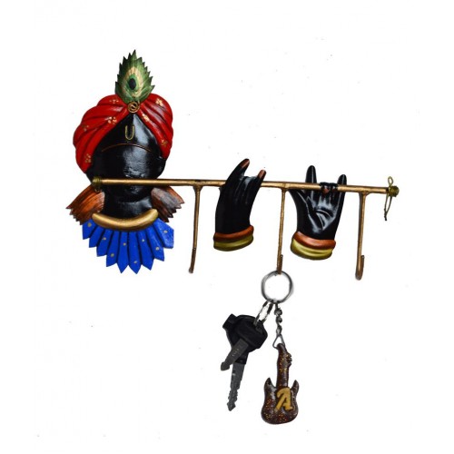 Make your home look beautiful by hanging your keys on this Wrought Iron Lord Krishna Key Holder. The key knobs have been carefully designed to hold your keys. This key holder can be hung at any place in your house to keep keys secured and can also be used as a wall decoration piece. It serves as a great gift, especially around religious celebrations and festivities. Each Key Holder is diligently handcrafted by skilled artisans from the house of eCraftIndia using various traditional techniques.