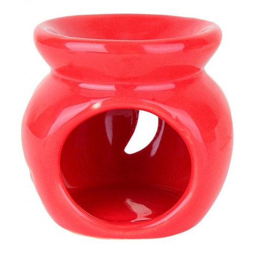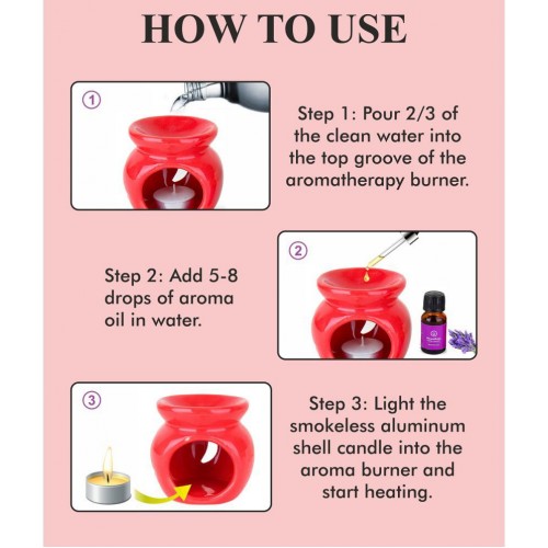 Asian Aura Ceramic Aroma Diffuser Oil Burner/ Warmer T-Light Candle Diffuser for Home Fragrance/ Office/ Restaurant with Aroma Oil (10 ml Aroma Oil in Fragrance of Rosy Romance & English Lavender ) Red Ceramic Pot