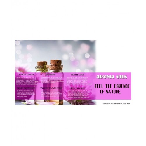 - Package Contents:Aroma Diffuser Oil (English Lavender, Rosy Romance, Fruit Basket, Fresh Lime, White Jasmine, Lemon Grass) 10 ML each Pack Of 6