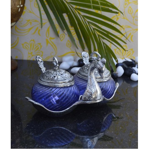 Crystal Mouth Freshner Container is a multi-utility item, with beautiful metal decorative work. Use it for storing mouth freshners or for decorative purpose or to keep your tid-bits. Drawing inspiration from the Mughal era, this perfect mix of crystal and metal adds that royal touch to your dining table and is a perfect companion for your festive parties. A perfect keep for your home, and an ideal gift on occasions of house-warming, birthdays, anniversaries. Decorate your home in sheer elegance and style by bringing home this beautiful crystal metal container from eCraftIndia.
