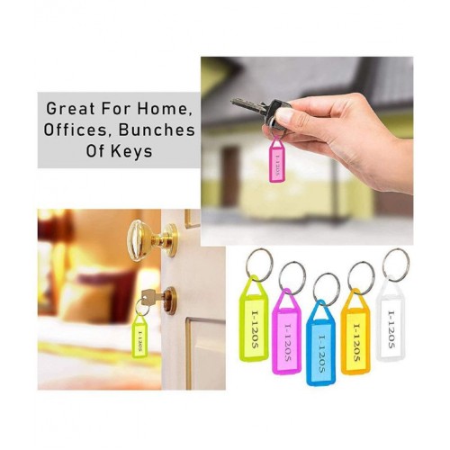 Once all the keys are tagged successfully, great for managing keys for multiple lockers or drawers at home, office, dispensary, school college etc. 50 Pieces Color coded translucent keychain key tags.2-sides ID label name tags with split ring come's in assorted translucent colors. Can be easily opened up like a POD and on a small strip of paper inside, Can jot down your classification or label and via split ring pop in the key. These small tags come in a plastic nice utility Box of 4 inch height and diameter. Dimension: 6 cm x 2.4 cm x 0.5 cm (
