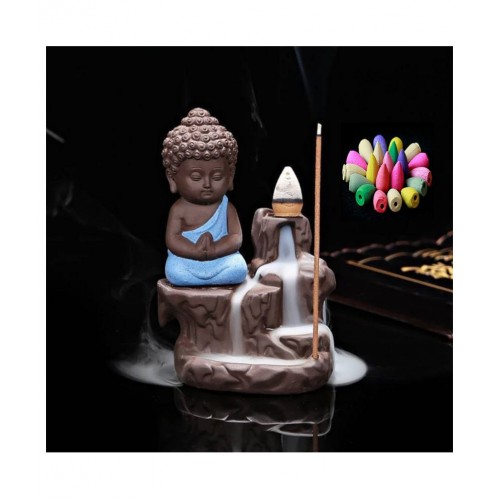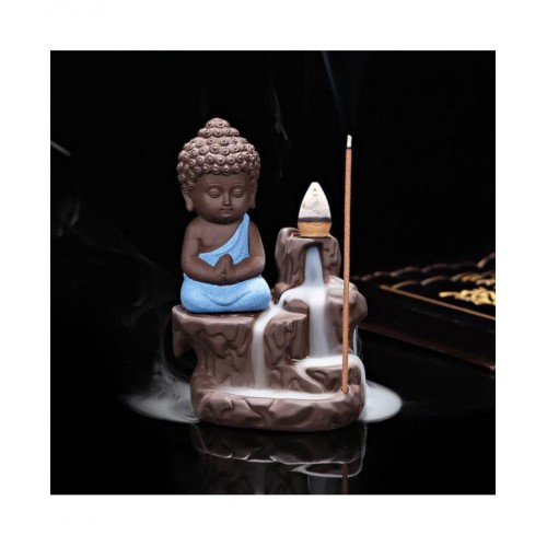 DEDHAS Blue polyresin Buddha Smoke Fountain Backflow Statue with 10 Incense Cones