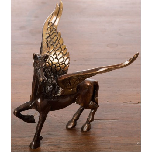 eCraftIndia Brown & Black Brass Antique Flying Angel Horse Showpiece