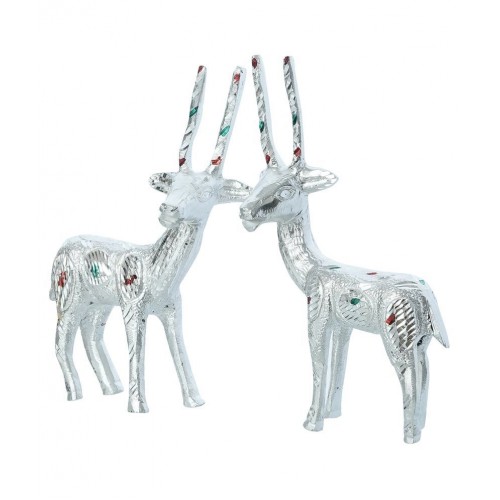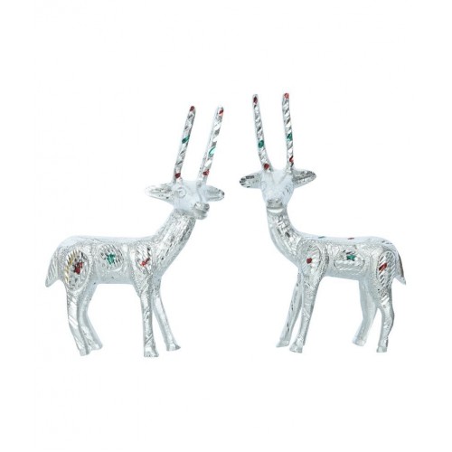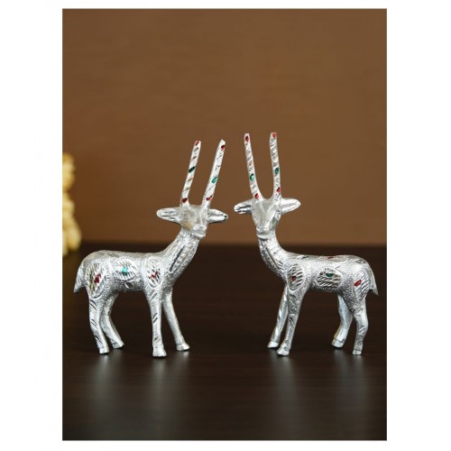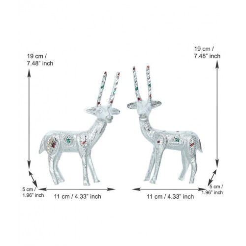 Net Contents One Set of 2 Engraved Silver Deer Handcrafted Decorative Metal Figurine