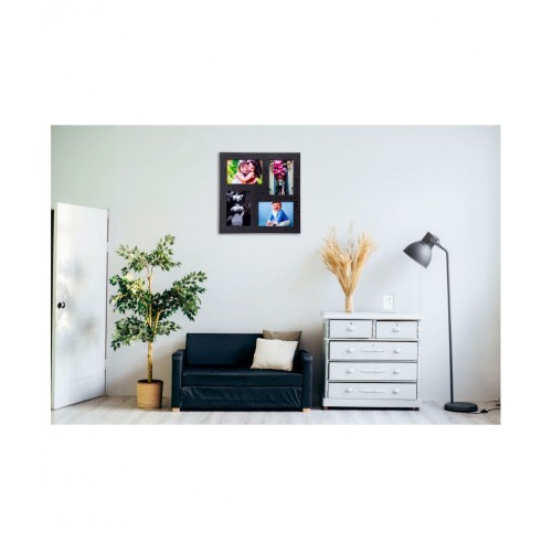 Thylable Stylish Vegan leather Wall Square photo frame - Ideal for 4 Pics - Croco Black