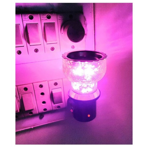 2 in1 Led Night Light/Camphor Diffuser Electrical 2 pin Fragrance Incense Holder Dhoop Dani Kapoor/Oil/Liquid with ON/Off Switch (Glass) (Violet)
