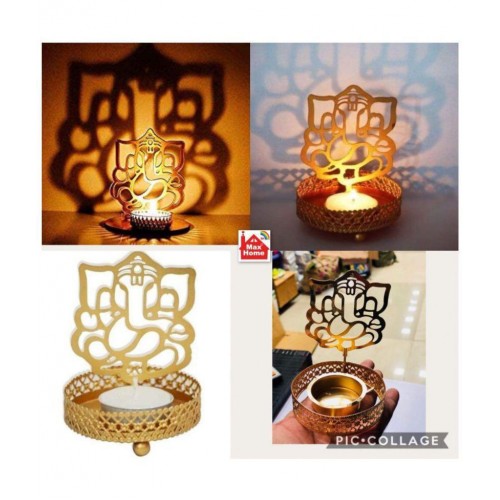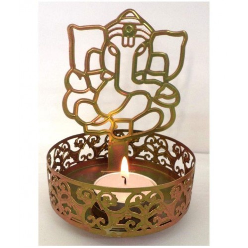 Contains one piece Ganeshji in golden electroplated Sheet metal + tealight. An ideal gift for employes and office staff to wish and greet them auspecious Diwali with spiritual gift. Ganesha also spelled Ganesh,