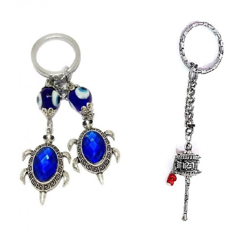 Set Of Prayer Wheel Key Chain And Double Tortoise Evil Eye Key Chain Key Ring - Made Up Of Metal And Mix Materials. Size:- Approx 3.5 Inches Each Key Ring. The Tortoise Represents Wisdom, Endurance, And Long Life.