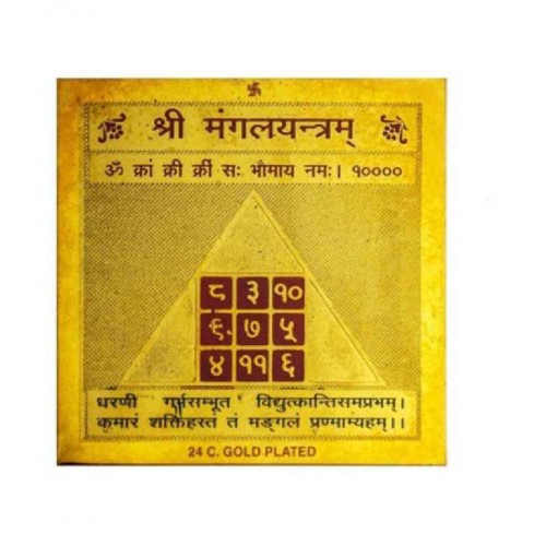 Shri Mangal Yantra Helps The Worshipper To Overcome The Above Difficulties And One Succeeds In All His Efforts To Gain Desires And Lead A Comfortable Life. When Mars Is Malefic Or One Is Of Rash Temperament, Mangal Yantra/ Mars Yantra Is Very Useful