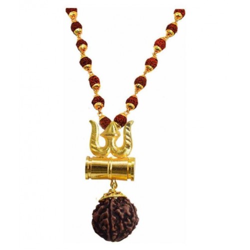 According to Hindu Old Scriptuers it is beleved that 5 Mukhi Rudraksha with Trishul & Damru Mala holds three fold powers of Lord Shiva. It has a Trishul, a Damaroo and a Rudraksha (All favourite to Lord Shiva) Lord Shiva uses Trishul when he gets angry, to destroy the evils from the earth. He plays Damaroo (a musical instrument) when He is happy which fills the surroundings with positive energy. Rudraksha is said to be an eye or tear of the lord, which signifies health and equilibrium of mind. This auspicious Kavach is made of combination of eight metals. Hence, it shall retain its shine and never tarnish. One who wears this Shiv Shakti Kavach is blessed by the lord himself.
