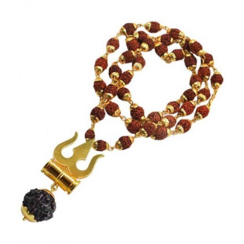 DAMRU LOCKET WITH GOLDEN CAP RUDRAKSHA MALA BY DVR COLLECTION