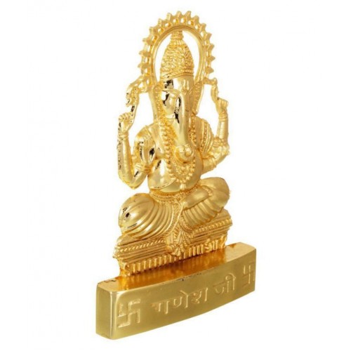 Golden plated lord ganesha idol : ganesha is worshipped on every occasion to remove all obstacles. First worship in all rites and rituals of ganesh is the mandatory. Ganesh ji is god of wisdom. If you have wisdom then and only then wealth will be stay with you. By worshiping ganesh, lakshami and durga together, we get wisdom and wealth. Idol of ganesh looks very beautiful. It can also be a unique and valuable gift to your loved ones. You can add this wonderful idol of lord ganesh, and can be placed and worshipped in puja room. Its look excellent in your home or office.Disclaimer: • product colour may slightly vary due to photographic lighting sources or your monitor settings. Descriptions for products are taken from scripture, written and oral tradition. Products are not intended to diagnose, treat, cure, or prevent any disease or condition. We make no claim of supernatural effects.Note: the image has been enlarged for better viewing • keep it away from perfume, sprays and water.
