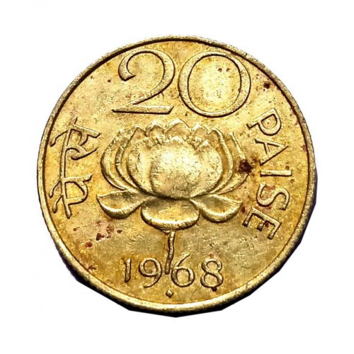 OLD RARE 20 PAISE LOTUS COIN YEAR 1968 FOR COLLECTION